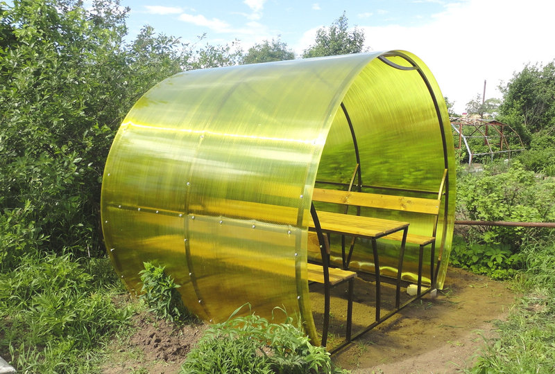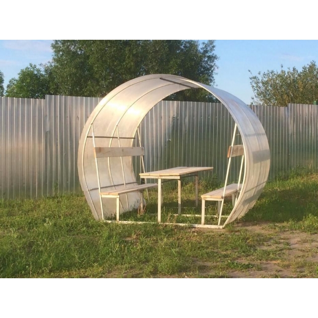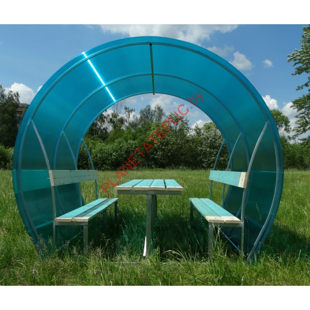 В комплект входит вся необходимая фурнитура. Вместительность беседки — до 12 человек.