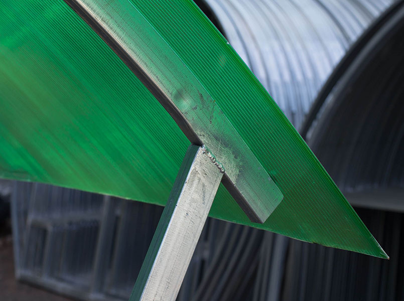 Верх покрывается сотовым поликарбонатом. Цвет на выбор: прозрачный, бронзовый, гранатовый, жёлтый, зелёный, красный, белый, бирюзовый, серый, синий.