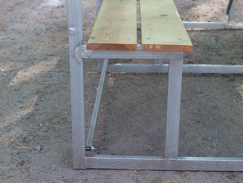 Столешница и лавки изготовлены из шлифованной сухой обрезной доски (без покрытия).
