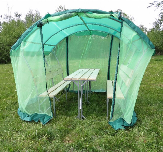 • Отсутствие сварных швов. Так как любой сварной шов с течением времени ржавеет (съедает металл) – срок этой конструкции ограничен. Беседка без сварных швов прослужат втрое больше сварных беседок.