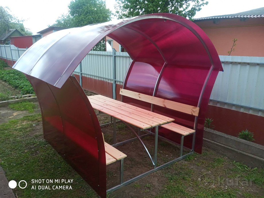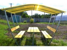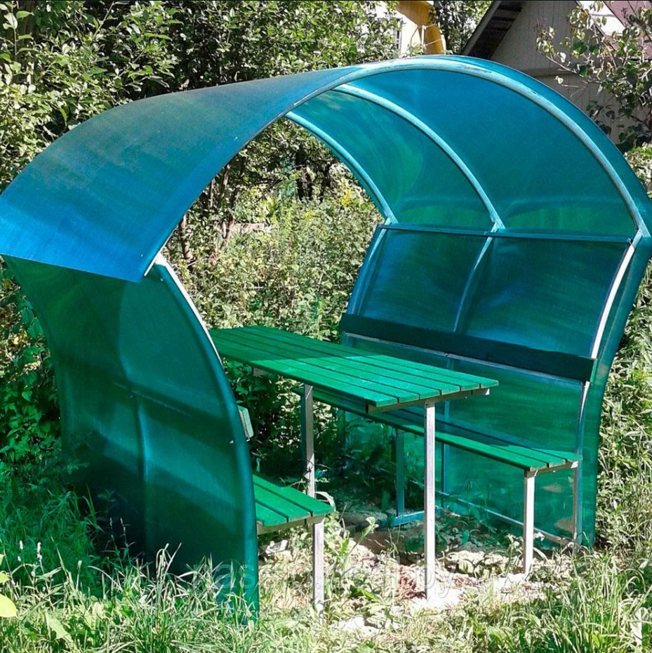 В комплект входит вся необходимая фурнитура. Вместительность беседки — до 12 человек.