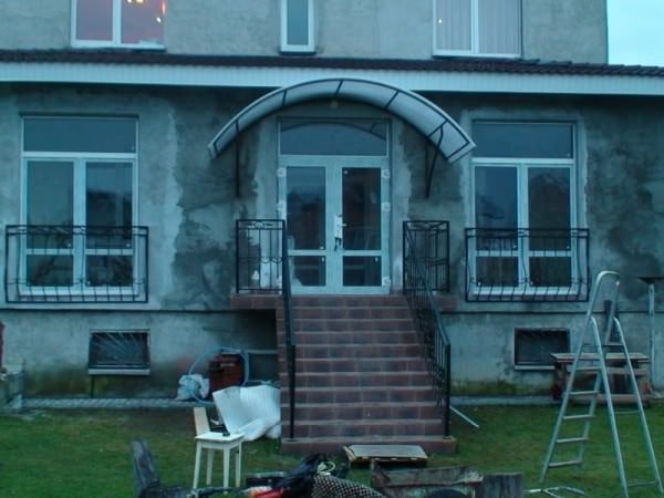 Входная группа играет важную роль в общем облике здания. Но подвергаясь воздействию атмосферных осадков, крыльцо и двери очень быстро теряют свою привлекательность. Существуют различные способы, позволяющие избежать столь неприятных последствий. Одним из самых простых и надежных является использование ‒ козырька из поликарбоната.