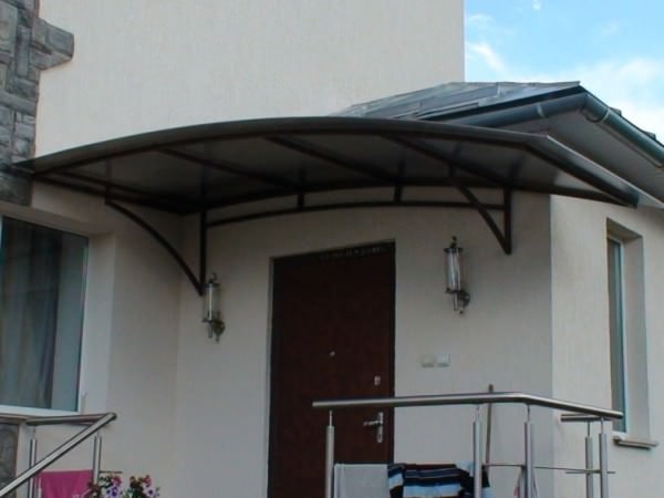 Входная группа играет важную роль в общем облике здания. Но подвергаясь воздействию атмосферных осадков, крыльцо и двери очень быстро теряют свою привлекательность. Существуют различные способы, позволяющие избежать столь неприятных последствий. Одним из самых простых и надежных является использование ‒ козырька из поликарбоната.
