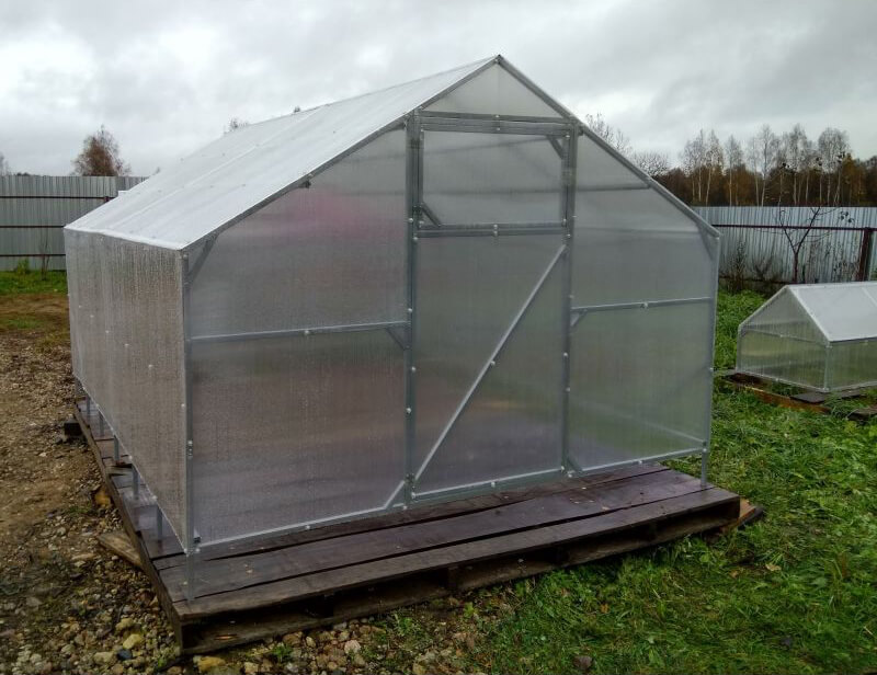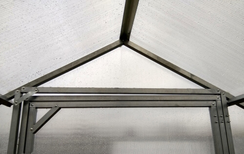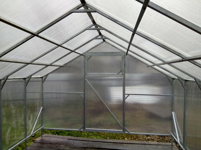 Для облегчения сборки теплицы торцы, двери, форточки изготавливаются и поставляются цельными. Для обеспечения жесткости всего каркаса промежуточные арки теплицы производятся и поставляются цельногнутыми. Продольные стрингера производятся и поставляются в двух позициях: 2 метра и 2,08 метра соответственно. Для достижения прочности всего каркаса -предусмотрены поперечные усилители арок, из расчета по 1 штуке на каждой арке. Во избежания наклона торцов каркаса при ветровых нагрузках – предусмотрены поперечные раскосы, по 4 штуки на стороны каждого торца. Все необходимы элементы (саморезы, болты, гайки и т.п) поставляются в коробках. Для крепления сотового поликарбоната к каркасу теплиц предусмотрены стальные оцинкованные стяжные ленты со стяжным болтом, из расчета по одной ленте на каждую дугу.