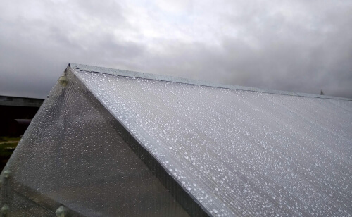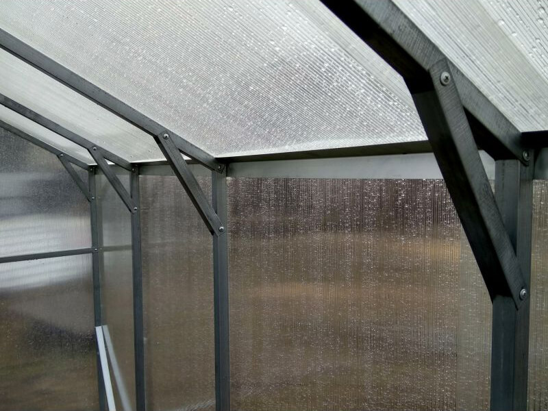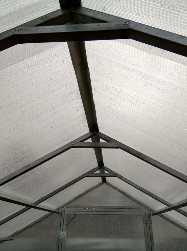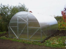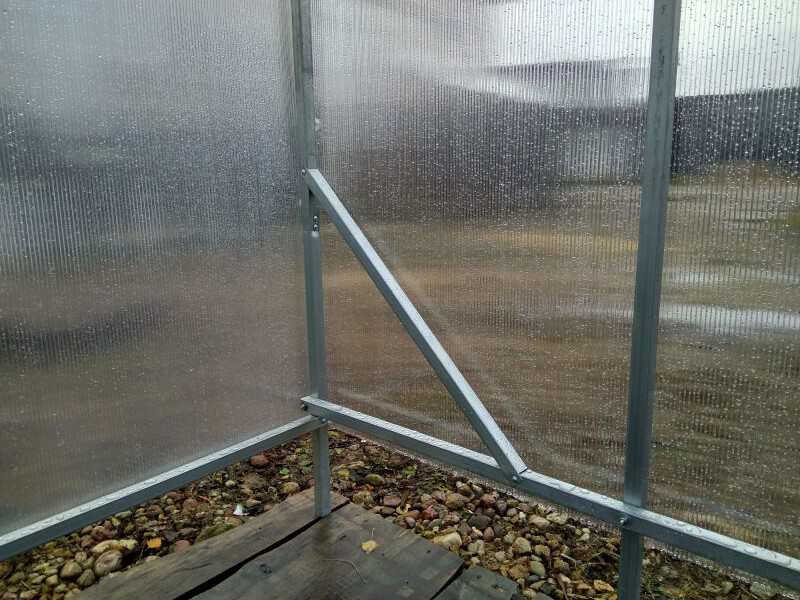 – Поликарбонат крепится на каждой арке оцинкованной стальной лентой (не продавливается и не портится поликарбонат. На стыках плотно прижимаются листы и не затекает вода -не нужен стыковочный профиль)